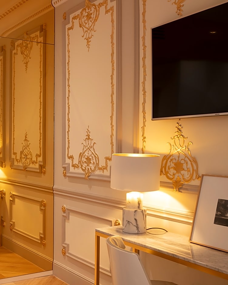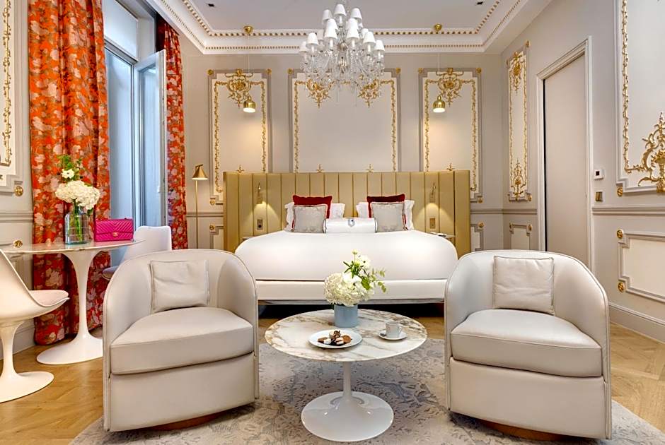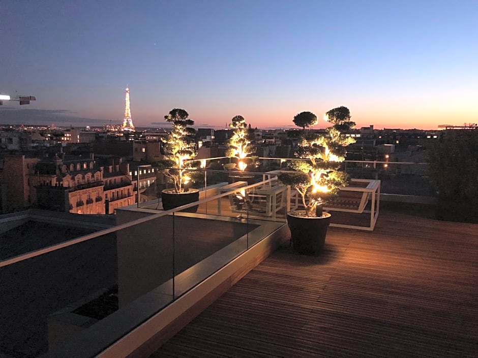 The Bowmann Suite is a 328 ft² suite that opens onto an infinity rooftop terrace with a hot tub and a 360-degree view of Paris, including Sacre Coeur, the dome of Saint Augustine's Church, the roofs of the Opera Garnier and the Eiffel Tower.